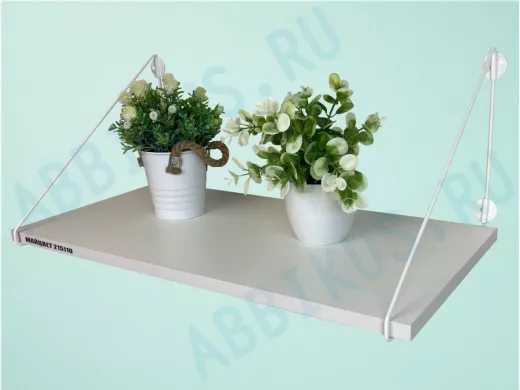 Полка выдержит тяжелые цветочные горшки с растениями, фоторамки, книги, сувениры и много другое.
