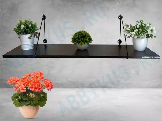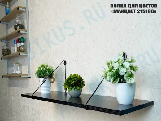 Полка выдержит тяжелые цветочные горшки с растениями, фоторамки, книги, сувениры и много другое.