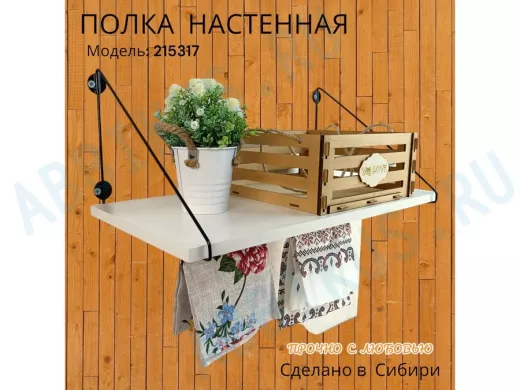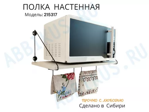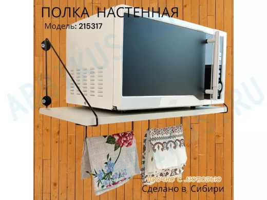 Заказать звонокПолка для микроволновки размер 60х30 см "ПАПАОС 215317" черный и сосна выбеленная с держателями