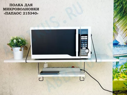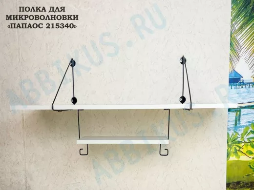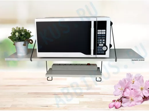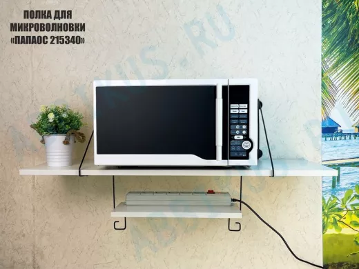 Заказать звонокПолка для микроволновки размер 90х30 см "ПАПАОС 215340" высота 46,5 см черный и сосна с полкой