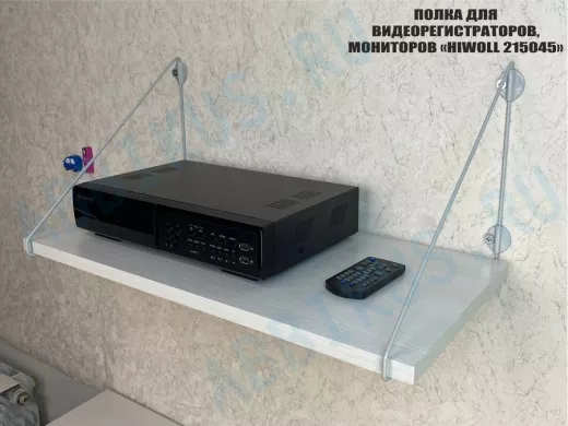 Полка надежно крепится к стене при помощи анкеров или шурупов с дюбелями, на ней можно разместить видеорегистратор, монитор и многое другое