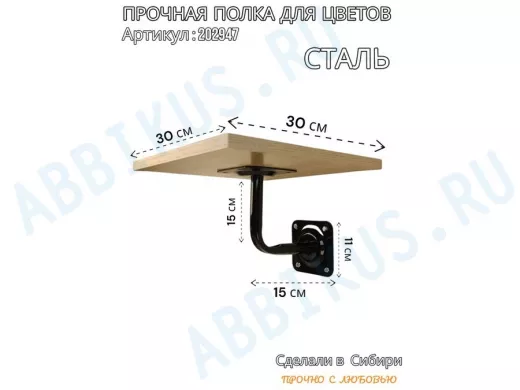 Заказать звонокПолка для цветов настенная пьедестальная, размер 30х30см "LOFTOM-202947" цвет дуб сонома