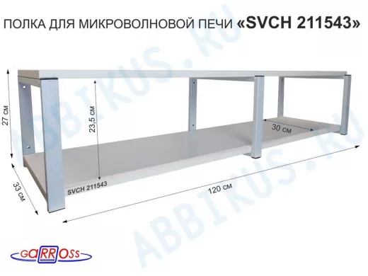 Заказать звонокКронштейн для микроволновки, 27см серый, 2 полки 30х120см "SVCH 211543" под микроволновую печь,сосна