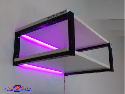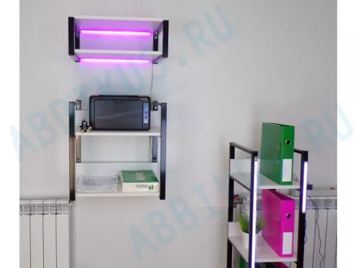 Подсветка розового цвета сдвоенная для двух полок, её можно устанавливать в любое место, направляя
