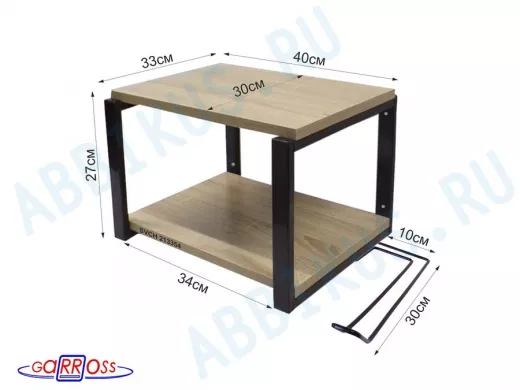- Каркас изделия выполнен из высокопрочного металла. Полка изготовлена из ламинированного ДСП