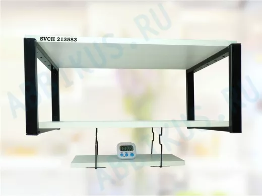 - На верхней полке можно разместить микроволновую печь или другую кухонную технику, на средней отлично "встанет" посуда, баночки под сыпучее и многое другое, а нижняя полка отлично подойдет для специй, таймера или маленьких сувениров