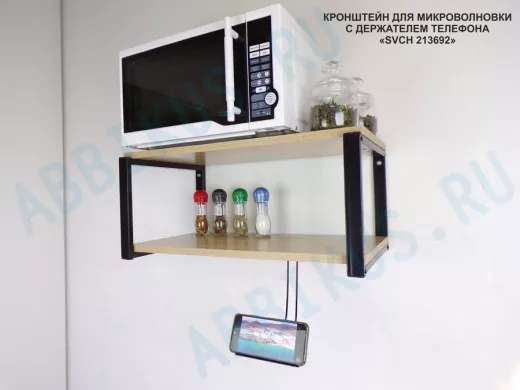 Полка для микроволновой печи с держателем телефона, 27см черный "SVCH 213692", 60х30, дуб сонома