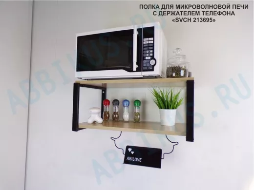 Полка для микроволновой печи с держателем телефона, 27см черный "SVCH 213695", 60х30, дуб сонома