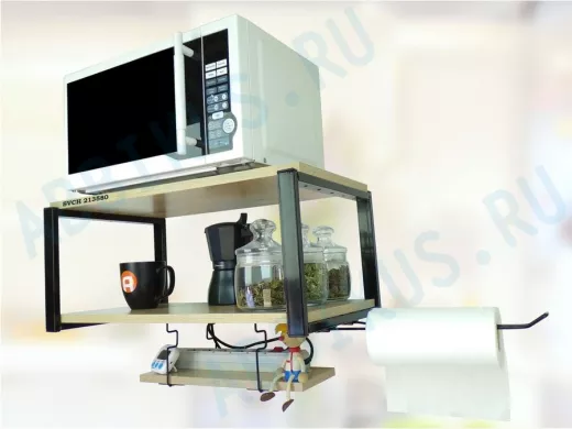- На верхней полке можно разместить микроволновую печь или другую кухонную технику, на средней отлично "встанет" посуда, баночки под сыпучее и многое другое, а нижняя полка отлично подойдет для специй, таймера или маленьких сувениров