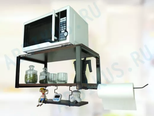 - На верхней полке можно разместить микроволновую печь или другую кухонную технику, на средней отлично "встанет" посуда, баночки под сыпучее и многое другое, а нижняя полка отлично подойдет для специй, таймера или маленьких сувениров