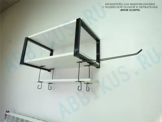 Заказать звонокПолка для микроволновки с подвесной полкой, 27см, черный "SVCH 213570" 60х30см, сосна, держатель