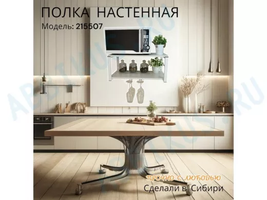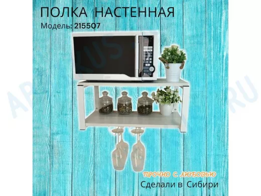 Заказать звонокПолка c двумя бокалодержателем для микроволновки "SVCH 215507" 60х30см, белая, сосна выбеленная