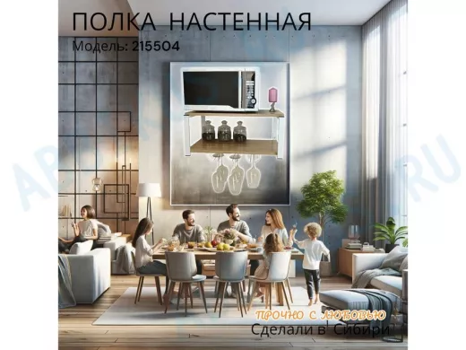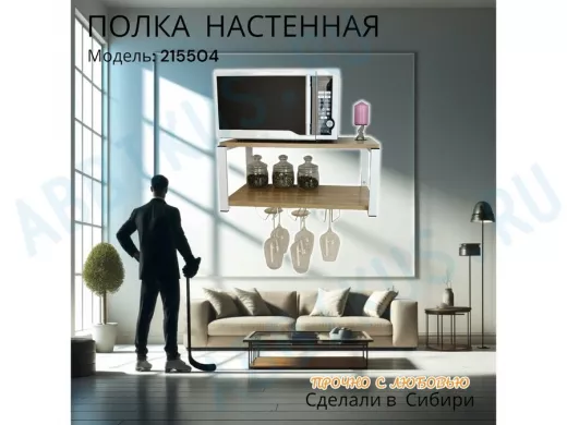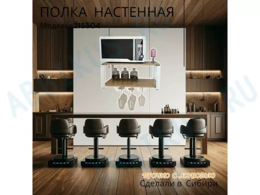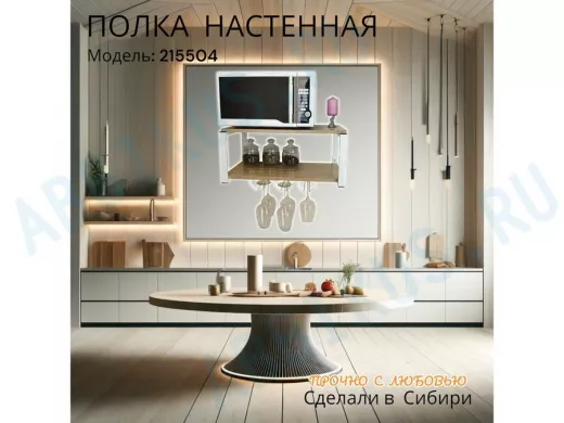 Заказать звонокПолка c тремя бокалодержателями для микроволновки "SVCH 215504" 60х30см, белая, дуб сонома
