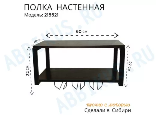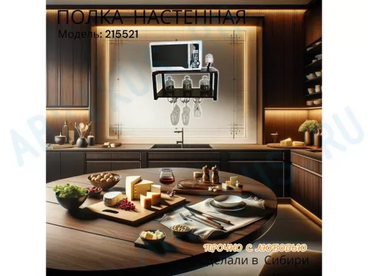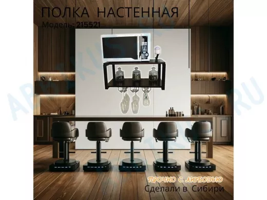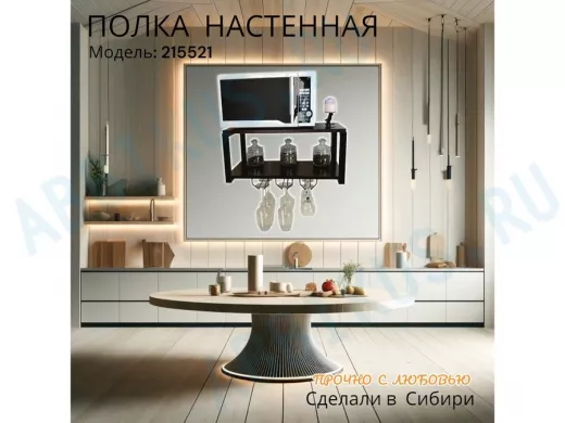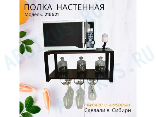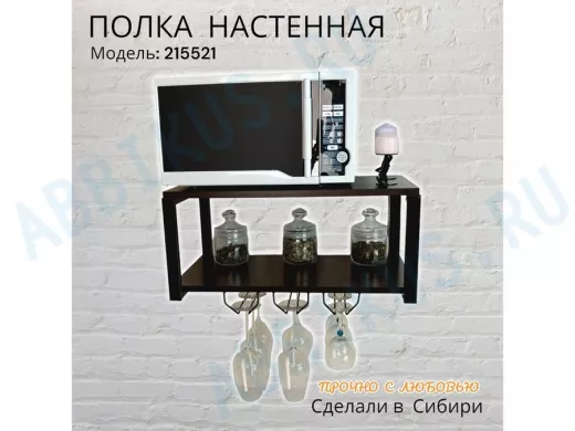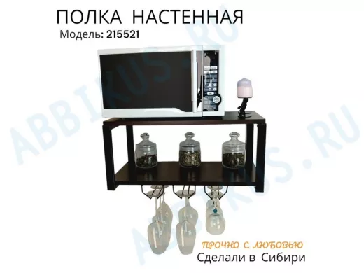 Заказать звонокПолка c тремя бокалодержателями для микроволновки "SVCH 215521" 60х30см, черная, венге