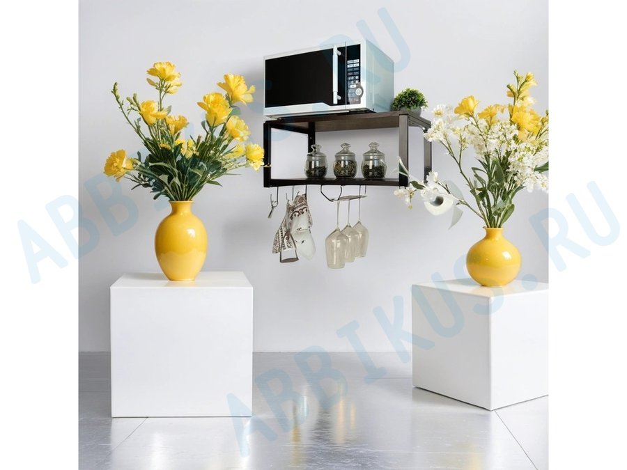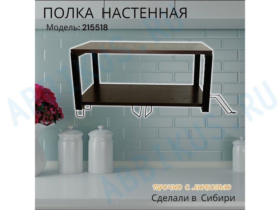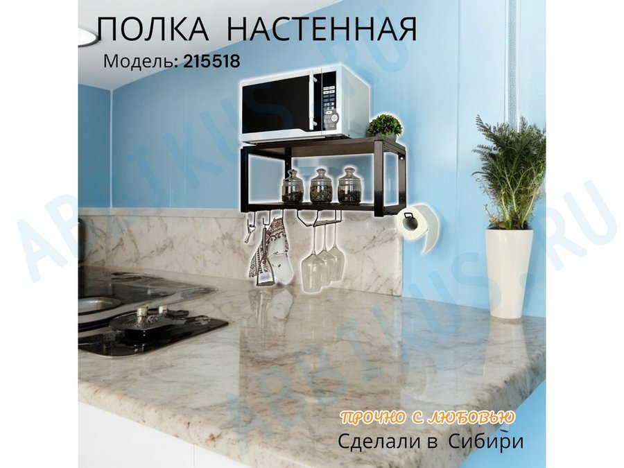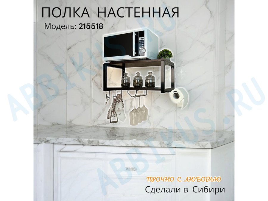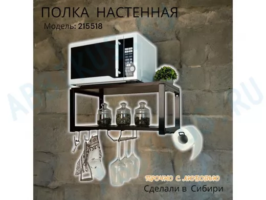 Заказать звонокПолка для микроволновки c бокало и полотенцедержат, крючками"ПолкаКрепка-215518"60х30см,черная,венге
