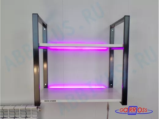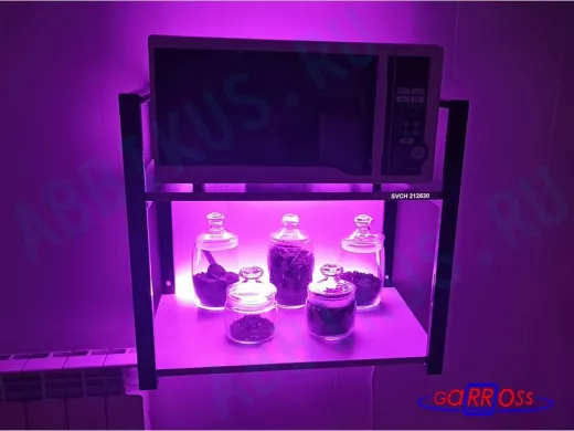 Подсветка розового цвета сдвоенная для двух полок, её можно устанавливать в любое место на полке