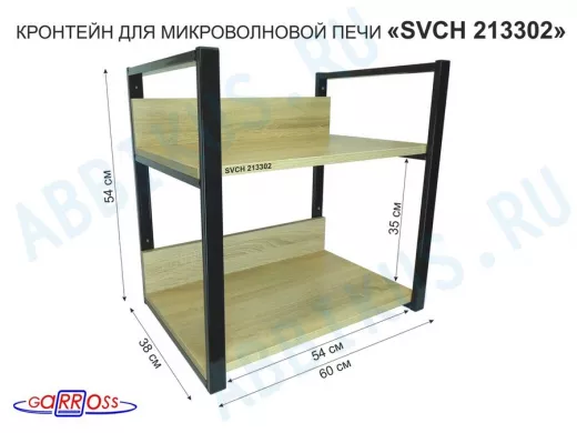 Кронштейн для микроволновки, высота, 54см черный "LAMAGIA 213302" две полки 35х60см со стенками, дуб