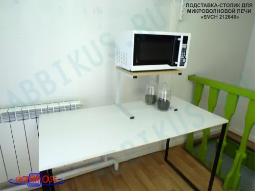 Универсальная подставка для микроволновой печи позволяет эффективно использовать место на столе.