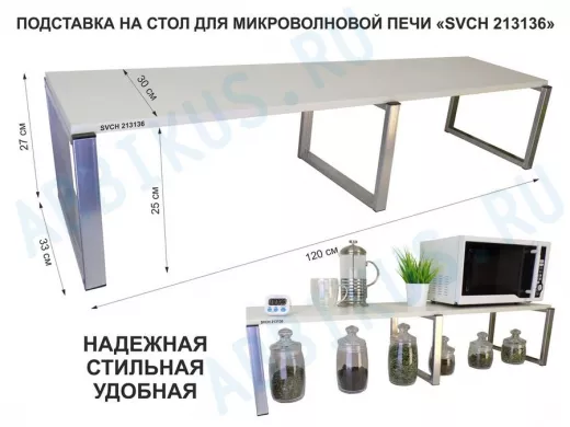 Заказать звонокПодставка на стол для микроволновой печи, высота 27см, серебр "SVCH 213136" полка 120х30см, сосна