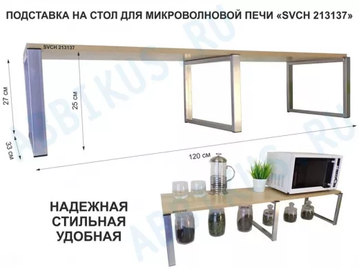 Заказать звонокПодставка на стол для микроволновой печи, высота 27см, серебр "SVCH 213137" полка 120х30см, дуб соно