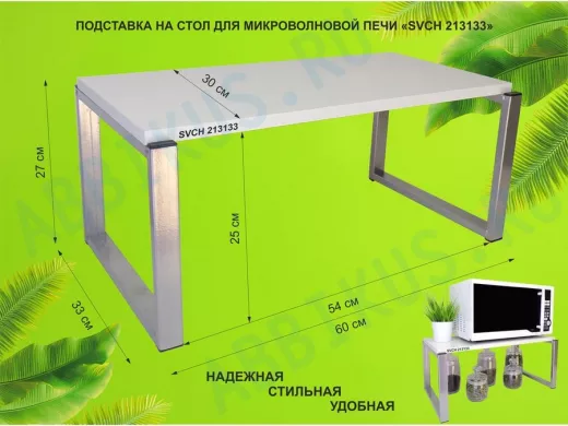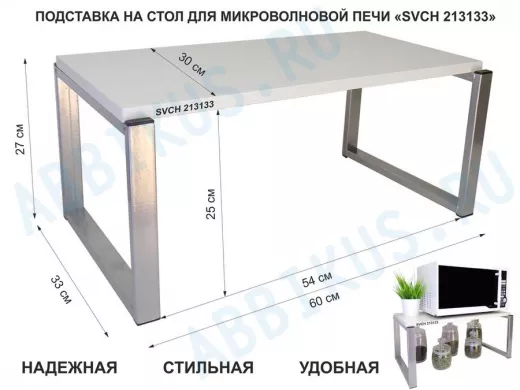Заказать звонокПодставка на стол для микроволновой печи, высота 27см, серебр "SVCH 213133" полка 60х30см, сосна