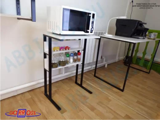 Столик для микровоновой печи позволяет эффективно использовать место на кухне. Важно отметить, что столик занимает немного пространства, поэтому ему найдётся место даже в самой малогабаритной квартире или офисе. Столик, в стиле Лофт, может быть использован в качестве подставки для цветов и книг, места для работы, места для хранения мелочей, в спальню для завтра, как обеденный стол для перекуса, для офиса и отдыха на даче. Для кабинета/спальни/гостиной. Стол универсален и будет отлично смотреться и в интерьере уютного дома, и в интерьере делового офиса, и в салоне красоты. Столик, без труда, можно перенести в любое место.