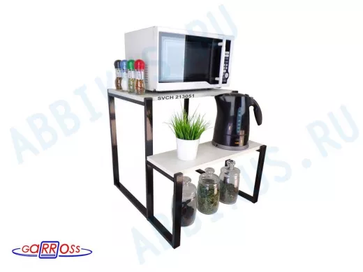 - Универсальная подставка для бытовой техники (микровоновой печи, кофемашины, тостера, электрического чайника и др) позволяет эффективно использовать место на столе.