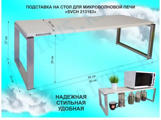 Подставка на стол для микроволновой печи, высота 27см, сереб "SVCH 213183" полка 90х30см, сосна