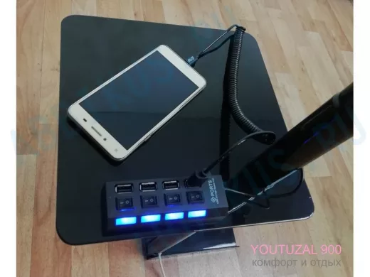 "YOUTUZAL 900B" чёрный держатель телефона для просмотра фильмов в кровати, столик с 4хUSB, зарядка