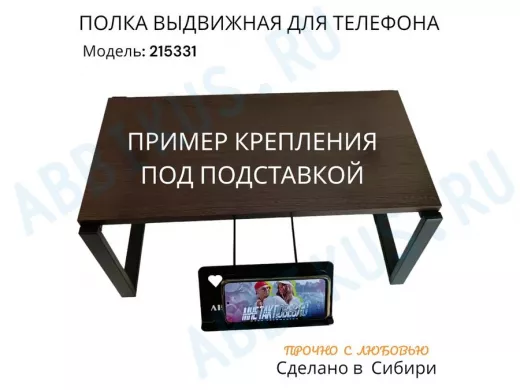 Универсальная выдвижная подставка для телефона крепится снизу под шкаф, стол, подставку.