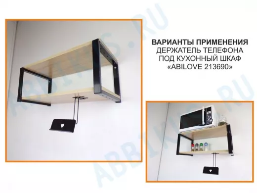 Заказать звонокСтальной прочный держатель телефона 13,5х6 см под кухонный шкаф "ABILOVE 213690" цвет черный