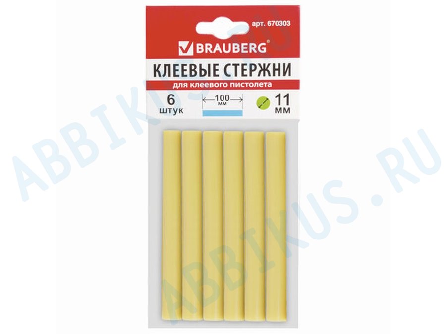 В корзину Купить в 1 клик Клеевые стержни, диаметр 11,0мм, длина 100мм, желтые, КОМПЛЕКТ 6 штук "BR-79849", европодвес