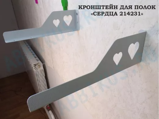 Заказать звонокКронштейн "СЕРДЦА 214231" для полок, правый 30x8 см , 7 отверстий 7 мм, серый
