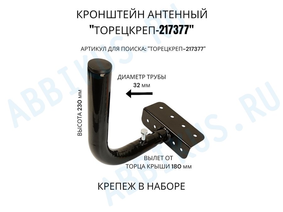 Кронштейн антенный на торец крыши, поворотный, вверх 23 см, 5х15см "ТОРЕЦКРЕП-217376" серый,диам32мм