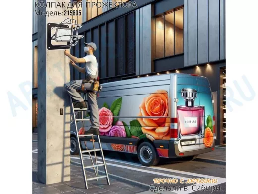 Заказать звонокКолпак кожух для прожектора или лампы освещения со скосами 20х20см "POHER-215605" вылет 20см, черный