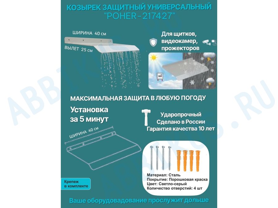 Заказать звонокКозырёк для защиты электрощита от дождя "POHER-217427" серый, ширина 41 см, вылет 27 см, сталь 2 мм